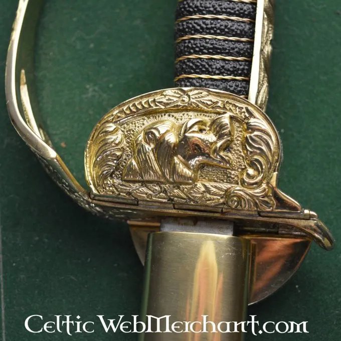 Der Griff ist mit schwarzem Leder bezogen und danach rund mit Messingdraht umwickelt. Es ist mit einem britischen Löwen verziert, auch aus Messing. Die gekrümmte Klinge ist eingerichtet. Das Schwert ist aus 1055 Kohlenstoffstahl. Die Sabel hat eine Länge von 92 cm mit einer Klinge von 81 cm. Es wird geliefert mit einer Scheide und wiegt ca.. 703 g.