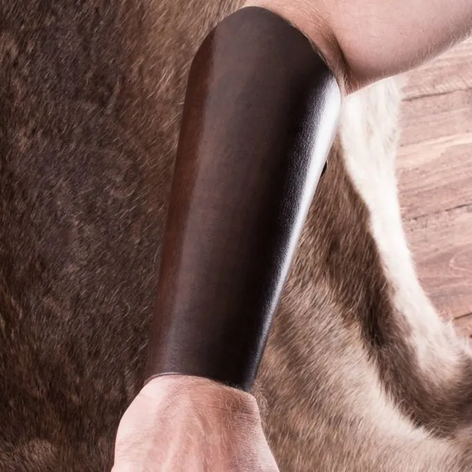 Ein Paar von starken Leder vambarces für die Unterarme in-Nachstellung und LARP Schlachten zu schützen. Perfekt für Reenactment der Wikinger und (Früh-) Mittelalter, LARP und Cosplay von Serien wie Vikings und Last Königreich. Sie sind aus hochwertigem pflanzlich gegerbten 2 mm dickem Leder. Sie können über die nackten Arme oder über hauberks oder Kleidungsstücke getragen werden. Sie können an der Rückseite die Armschienen mit Lederbändern befestigen.