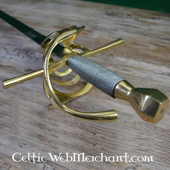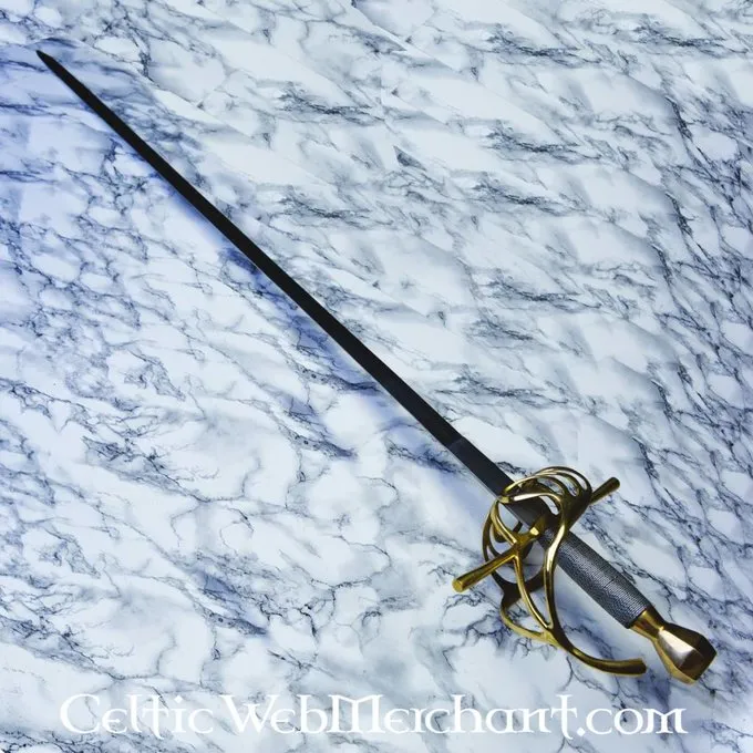 Das Rapier schützt die Hand, weil der Stahl Griff. Seine Länge beträgt 112 cm, hat es eine Klinge von 96 cm und dessen Breite beträgt 3 cm. Es wiegt 1250 g.