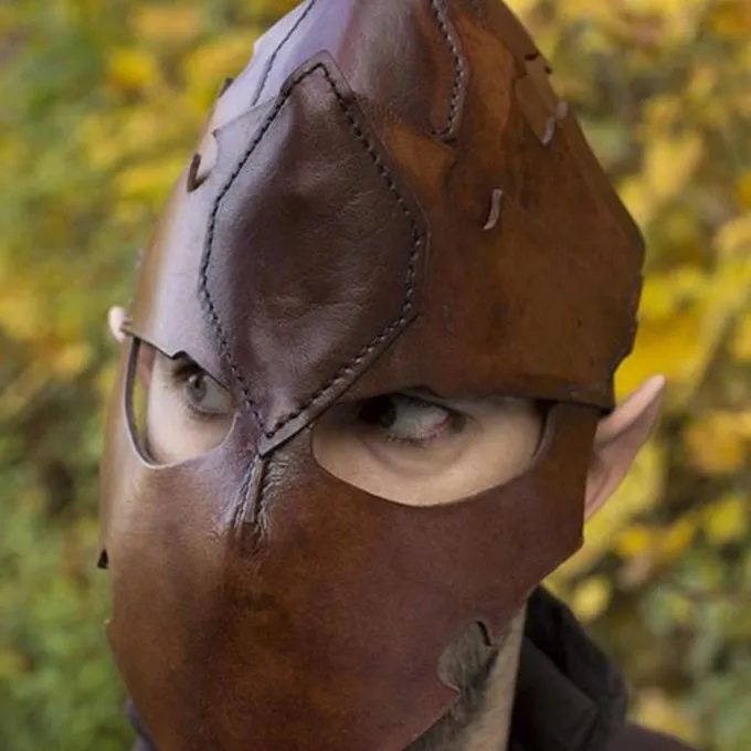 Das Design dieses Leder Helm ist auf dem Relief der Haut eines Drachen basiert und bietet einen guten Schutz während LARP Schlachten. Mit diesem Lederhelm das gesamte Gesicht und Kopf geschützt ist. Es ist mit Hilfe eines Lederbandes und hat eine große Öffnung für die Augen für eine optimale Sicht. Das Leder ist von hohen Qualität pflanzlich gegerbtes Leder.