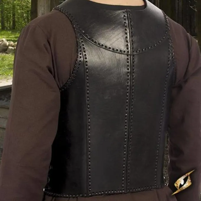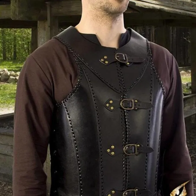 Die Rüstung umfasst sowohl die gesamte Brust und den Rücken. Die Front verfügt über vier Lederriemen mit Schnallen und Leder Schnürbänder auf der Seite, so dass es auf Ihre Größe eingestellt werden kann. Es ist geeignet für Menschen mit einem Brustumfang von 99 bis 103 cm.