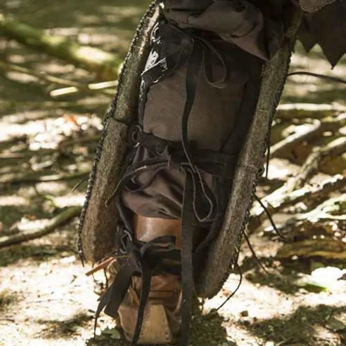 Diese LARP Grieben aus hochwertigem pflanzlich gegerbtem Leder mit einer Innenauskleidung aus Velours-Leder. Sie bestehen aus Lederstücken zusammengenäht mit Leder Schnürbänder. Die Naht ist deutlich sichtbar für einen handgefertigten Look. Das Leder hat keine polierte glatte Oberfläche und hat daher einen besonderen Look, perfekt für einen Ork larping.