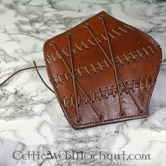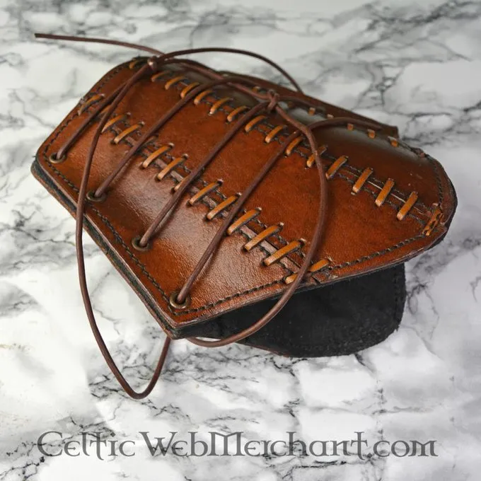 Diese Armschienen sind für LARP geeignet. Sie sind aus schönen starken braunen Qualität Leder. Sie können durch Knappen getragen werden und werden von der Marke Palnatoke gemacht. Sie werden pro Paar geliefert und sind in den Größen S, M und L. Die Innenseite ist aus Veloursleder und sie sind mit einer Schnur befestigt. Sie wiegen 410 Gramm