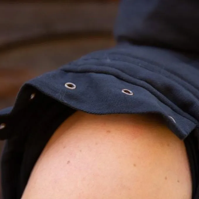 Diese gambeson schützt den Oberkörper und Hüften. Die gambeson ist ärmellos und daher angenehm kühl an heißen Tagen. Sie können es unter einer Kette Mail unter Rüstung tragen oder als separates Kleidungsstück oder eine Jacke. Die gambeson besteht aus Schichten aus Baumwoll-Canvas mit Polyesterwatte, in vertikalen Linien im europäischen mittelalterlichen Stil genäht. Die gambeson hat einen erhöhten Kragen. Sie können mit einer gepolsterten Kragen und Bundhaube für optimalen Schutz des Kopfes und Halses in Kombination tragen. Diese gambeson ist auch in größeren Größen erhältlich.