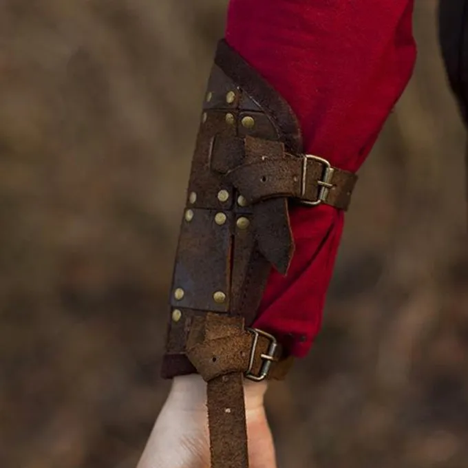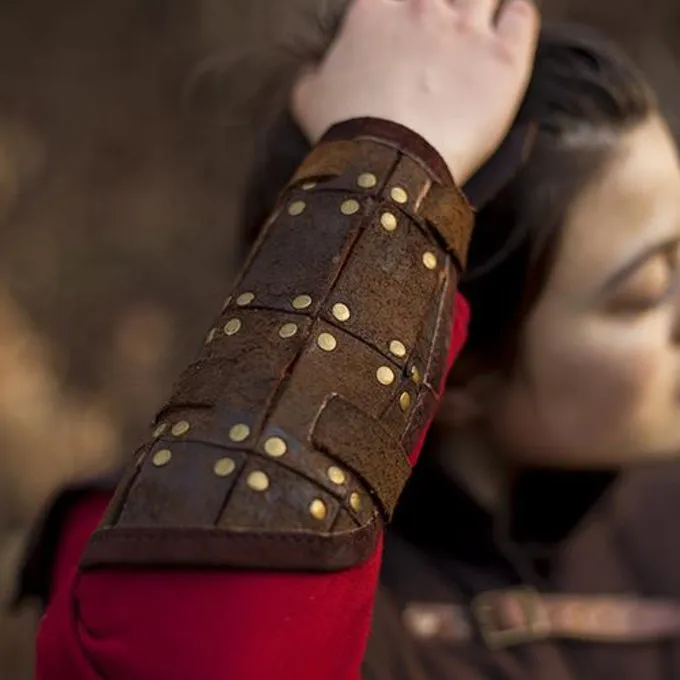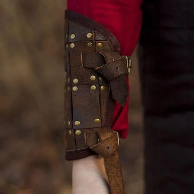 Diese schönen Leder Armschienen bestehen aus quadratischen Vertiefungen aus Leder, die miteinander mit Messingnägeln verbunden sind. Lederrüstung in diesem Stil wurde im Mittelalter verwendet und wurde vor allem in den späten Mittelalter von Fußsoldaten getragen. Sie können natürlich auch für LARP und Nachstellung des frühen Mittelalter und andere historische oder Fantasie Arten verwendet werden. Sie können die Armschienen auf den Arm mit den Lederbändern und Riemen befestigen. Diese Armschienen sind pro Paar geliefert.