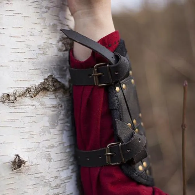 Diese schönen Leder Armschienen bestehen aus quadratischen Vertiefungen aus Leder, die miteinander mit Messingnägeln verbunden sind. Lederrüstung in diesem Stil wurde im Mittelalter verwendet und wurde vor allem in den späten Mittelalter von Fußsoldaten getragen. Sie können natürlich auch für LARP und Nachstellung des frühen Mittelalter und andere historische oder Fantasie Arten verwendet werden. Sie können die Armschienen auf den Arm mit den Lederbändern und Riemen befestigen. Diese Armschienen sind pro Paar geliefert.
