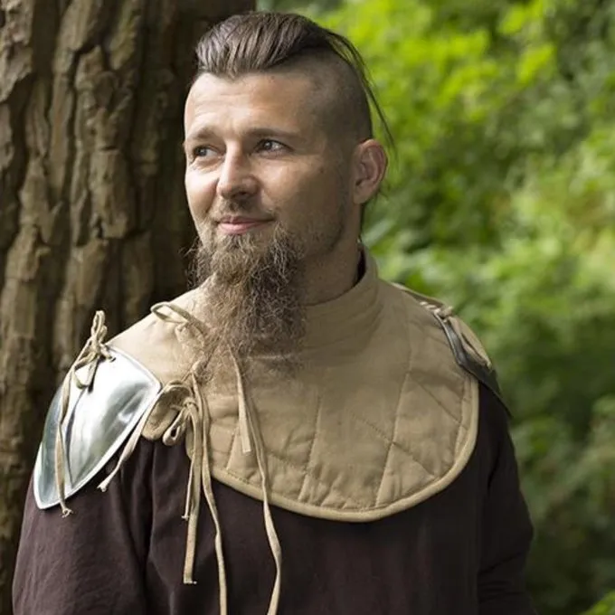 Sie können das Gorget als zusätzlichen Schutz mit Ihrem Gambeson oder einer LARP-Rüstung tragen. Das Set wiegt weniger als ein Kilo, so dass Sie mit Halsband und Schultern schnell und wendig sind. Sie können die Schultern mit Schnürsenkeln am Kragen befestigen, sodass Kragen und Schultern auch separat verwendet werden können.