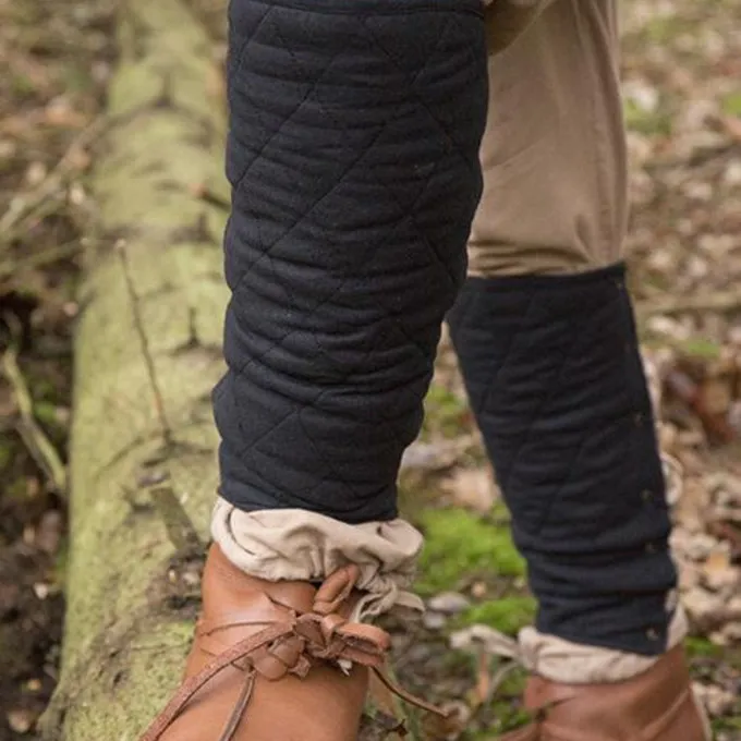 Diese gepolsterte Grieben wurden speziell für die Wiederinkraftsetzung Kampf und LARP, den Schutz der unteren Beine unterhalb der Knie entwickelt. Die Schienbeinschützer sind aus Baumwolle mit Polyesterfüllung. Die Grieben können an die Unterschenkel mit Baumwolle Schnürsenkel befestigt werden, so dass sie leicht justieren zu machen. Diese Grieben können einzeln oder als komfortable Polsterung unter Stahlbeinrüstung getragen werden.