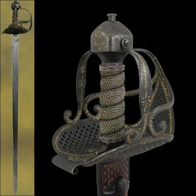 Dieses Modell hat einen dunklen gebräunten Griff, die mit Gold und einem Griff verziert ist, die Runde mit sharkskin gewickelt ist. Da die ursprüngliche Scheide wurde nie gefunden, wird dieses Schwert mit Scheide geliefert, die für das 17. Jahrhundert typisch ist. Das Schwert hat eine Länge von 110,5 cm mit einer Klinge von 83,2 cm und wiegt 1471 g.
