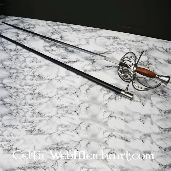 Das Rapier ist nach mehreren dem 17. Jahrhundert deutsche Originale hergestellt. Es ist besonders gut ausbalanciert und hat einen Holzgriff. Es hat eine Länge von ca. 112 cm mit einem Messer von ca. 93 cm und wiegt 1 kg. Dieser Rapier ist mit einem Leder Scheide geliefert.
