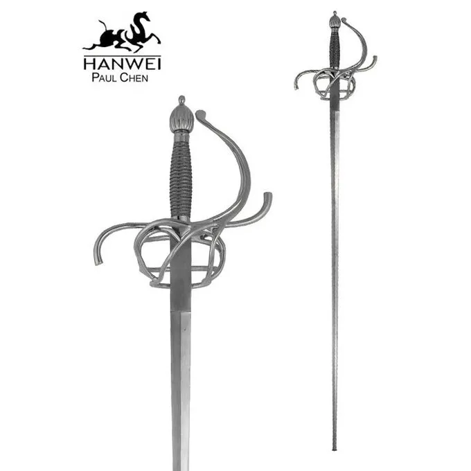 Dieser Rapier wird von Hanwei entworfen für den Kampfsport und Reenactment. Dieser Rapier hat eine stumpfe Klinge mit Sicherheitsspitze. Es ist eine Nachbildung des frühen 16. Jahrhundert Rapiere, die von Bürgertum und Adel verwendet wurden.