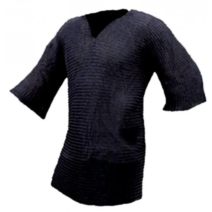 Dieses Kettenhemd ist aus 1,6 mm dicken bronzed unvernietet Rundringen mit einem Innendurchmesser von 8 mm hergestellt. Die Ringe sind vier in einem handwoven. Das Kettenhemd hat mittellange Ärmel und erreicht knapp über die Hüfte.