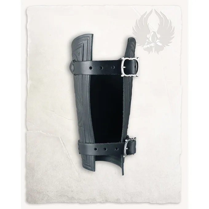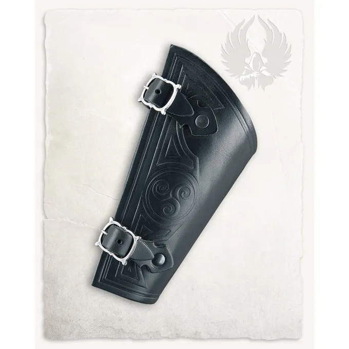 Diese Vambrace eignet sich für Reenactment, Cosplay und Larp. Es besteht aus Leder. Die Vambrace ist mit keltischen Mustern und Knöpfen dekoriert. Das Innere ist geringer Schnitt, um den Träger leichter zu erleichtern, um ihren Arm zu beugen. Die Vambrace kann mit den außen angebotenen Gürtelschnallen geschlossen werden.