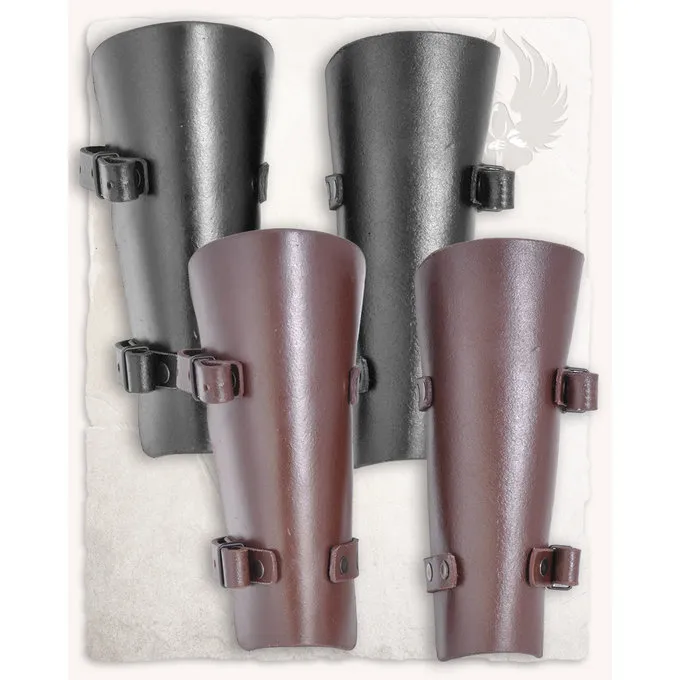 Diese Vambraces eignen sich für Reenactment, Cosplay und Larp. Die Vambraces bestehen aus Splitleder. Dieses Material sorgt dafür, dass die Vambraces sehr robust und sehr flexibel sind. Aufgrund des einfachen Designs der Vambraces können sie für viele verschiedene Kostüme verwendet werden.
