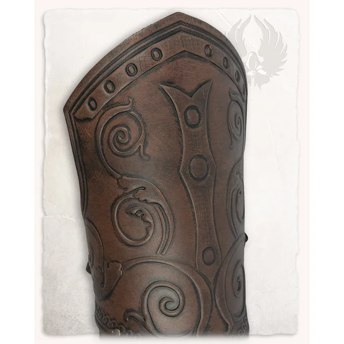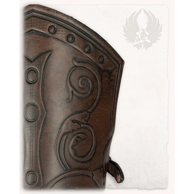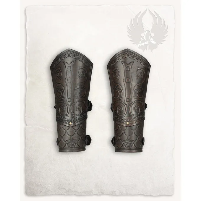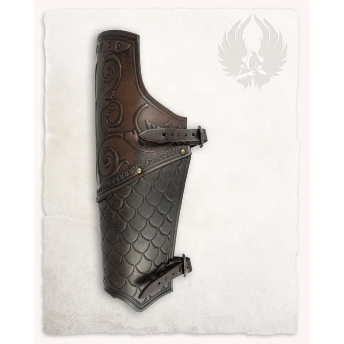 Diese Vambraces eignen sich für LARP, Cosplay und Photoshoots. Die Vambraces bestehen aus Leder. Sie sind mit Blumenmustern und Skalen verziert, die den Vambraces ein anmutiges Erscheinungsbild geben. Sie können mit zwei Schnallebändern geschlossen werden, die an den Sitz des Trägers angepasst werden können.