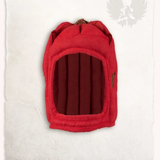 Diese Bewaffnung Kappe ist auf einen aus dem 15. Jahrhundert Original basiert, die heute Teil der Sammlung in der Hofjagd ist und Rüstkammer in Wien. Die Bewaffnung Kappe schützt den ganzen Kopf und hat Lederverstärkungen an den Ohren. Die Oberseite ist mit einem Lederband geschlossen, so kann es auf eine Größe eingestellt werden. Diese Bewaffnung Kappe ist aus groben gewebten Leinen und Baumwollmischung mit einem Schaumstoffpolster. Diese Bewaffnung Kappe kann unter dem bascinet, großer Helm getragen wird, Eimer Helm, armet und unter einigen Arten von sallets. Diese Farbe ist eine limitierte Auflage!