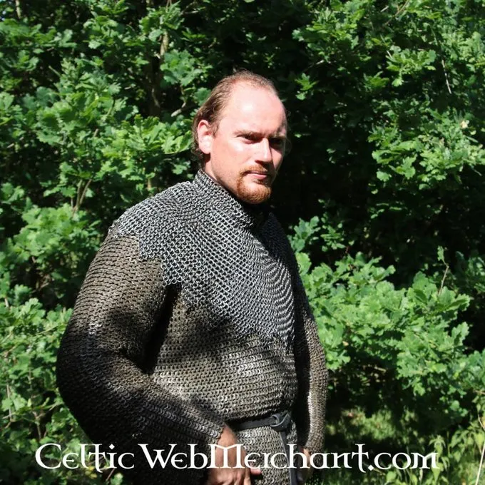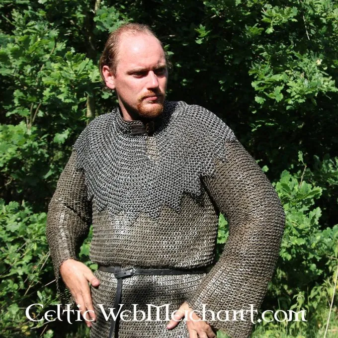 Helmbrünnen wie diese wurden in ganz Europa im 15. und 16. Jahrhundert getragen. Im 16. Jahrhundert war es sehr beliebt unter dem deutschen Landsknecht und der schottischen und irischen Galloglass. Diese Art von Helmbrünne ist auch Bischofsmantel genannt. Es hat Lederriemen mit Replik Schnallen. Die untere Seite des Kragens ist aus Messing gefertigt Ketten. Diese Helmbrünne ist aus unvernietet Ringe 1: 4.