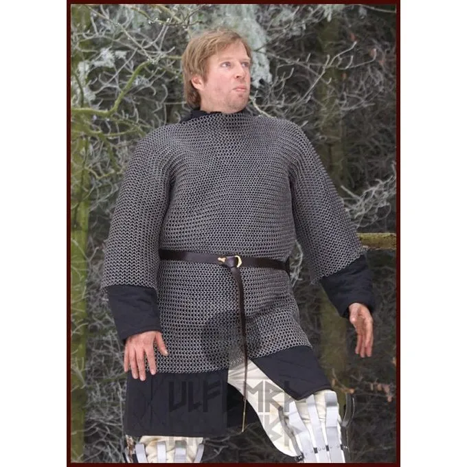 Dieses Kettenhemd ist eine Replik von mehreren Originalen. Viele ausgegraben Kettenhemde bestehen aus einer Kombination von gemischten Ringe aus denen die meisten Ringe mit einem Durchmesser von ca. haben. 6 mm. Dieses Kettenhemd wird nach diesen ausgegrabenen Vorlagen entwickelt. Da die Ringe deutlich kleiner als die meisten Kettenhemde sind, könnte dies Kettenhemd aus 1 mm dicken Federstahl hergestellt werden. Dieses Kettenhemd ist äußerst effizient. Es hat kleinere Öffnungen, so dass es Stichwunden verhindert und eine Gewichtsreduktion von 30%. Dieses Kettenhemd ist perfekt für experimentelle Archäologie, vollen Kampf Reenactment und lebendige Geschichte.