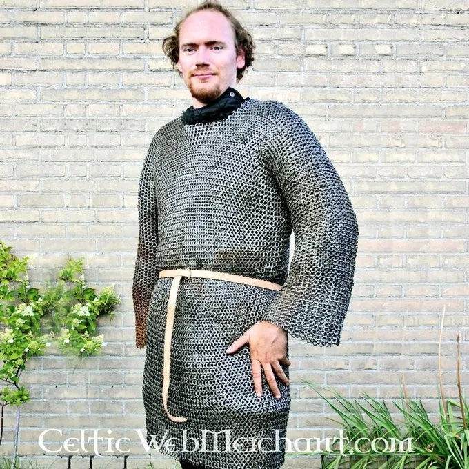 Dieses Kettenhemd ist aus 1,8 mm breiter Flachringen mit einem Innendurchmesser von 8 mm hergestellt. Die Ringe sind vier in einem gewebt und anschließend mit Nieted Rundnieten. Das Kettenhemd hat lange Ärmel und reicht bis zum Knie.