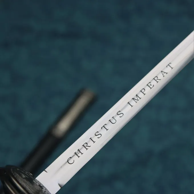 Eine schöne Rapier von Windlass Steelcraft basiert auf einem ursprünglichen Rapier in der Sammlung der Royal Armouries in London. Eine der schönsten Rapieren in der Welt! Dieser Greifer hat einen extravaganten Korb, der reich mit Vögeln und Pflanzenmotiven verziert. Diese starke Korb schützt die Hand während der Schwertkampf oder Fechten und die Parierstange blockiert die Rapier des Gegners. Die schweren Pauschen bieten eine gute Balance. Der Griff ist mit geflochtenem Stahldraht gewickelt. CHRISTUS imperat: Die Klinge ist mit dem Text auf beiden Seiten geätzt. Das heißt: Christus Befehle. Dieser Greifer ist mit einer Lederscheide geliefert. Die halbscharfen gehärtete Klinge ist aus 1065 Kohlenstoffstahl geschmiedet und weist eine Härte von 48-52 HRC. Ein schönes Schwert an der Wand, perfekt auch für 17. Jahrhundert Nachstellung und drei Musketiere Cosplay. Wenn Sie die Klinge blunten, ist es eine hervorragende Schlacht bereit Rapier für während Nachstellung Schlachten Schwertkampf und ein perfektes Trainingsschwert für Fechten und historische europäische Kampfsport.